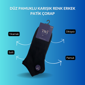 Düz Pamuklu Karışık Renk Erkek Patik Çoraplar, hem rahatlık hem de şıklık sunar.